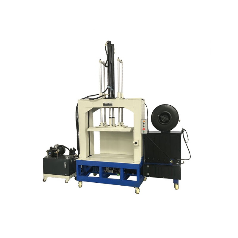 Automatic Compression Strapping Machine can press and strap the finished tarpaulin products automatically.